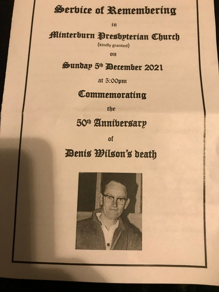 .. thanks for Denis' life was held in Minterburn Presbyterian Church - the Church where Denis was buried.