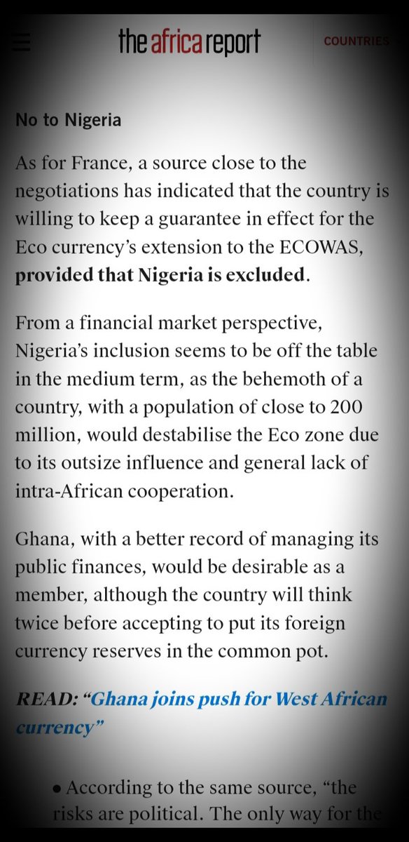 ECOWAS as a legitimate crises management entity. First of all what does that even mean? The same country that hijacked the ECOWAS single currency project the ECO, persuaded them to peg it to the CFA and, in a bizzare twist turned member countries against Nigeria?
