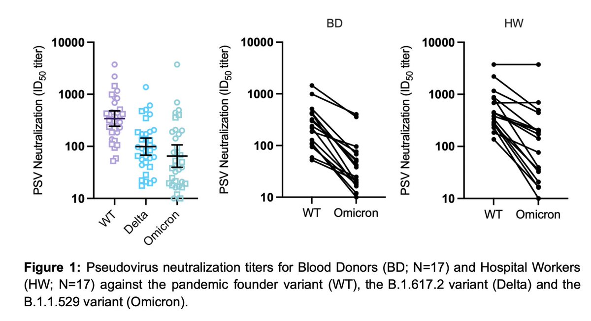 A second study also posted today, with Omicron pseudovirus neutralization data, from the Karolinska. This study had four notable findings: