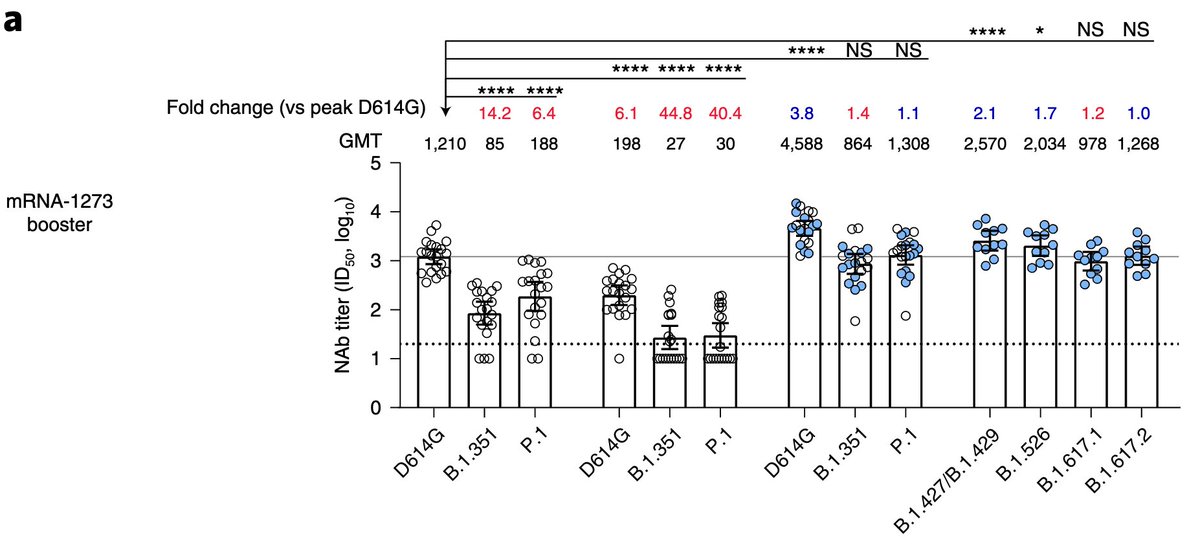 1/ The regular vaccines give great booster responses against Delta and other variants