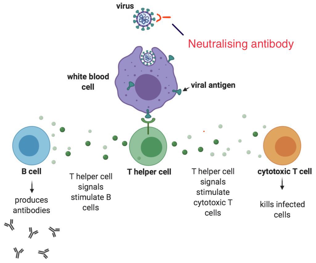 Neutralising antibodies form only a tiny fraction of our TOTAL antibody response. Most antibodies are produced AFTER the attack occurs, helping eliminate virus.