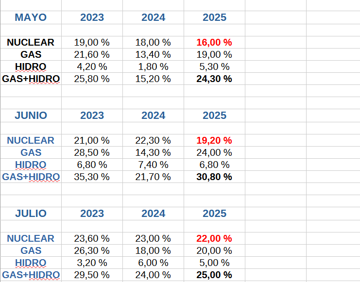 👉DESDE EL APAGÓN SE HA REDUCIDO LA GENERACIÓN NUCLEAR E INCREMENTADO LA DE GAS.
