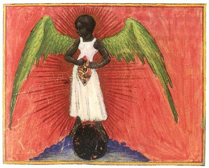 Aurora Consurgens (att St. Thomas Aquinas or “Pseudo-Aquinas”) Black Female Angel Germany (c. 1420s) Parchment Codex w Watercolor Miniatures Image