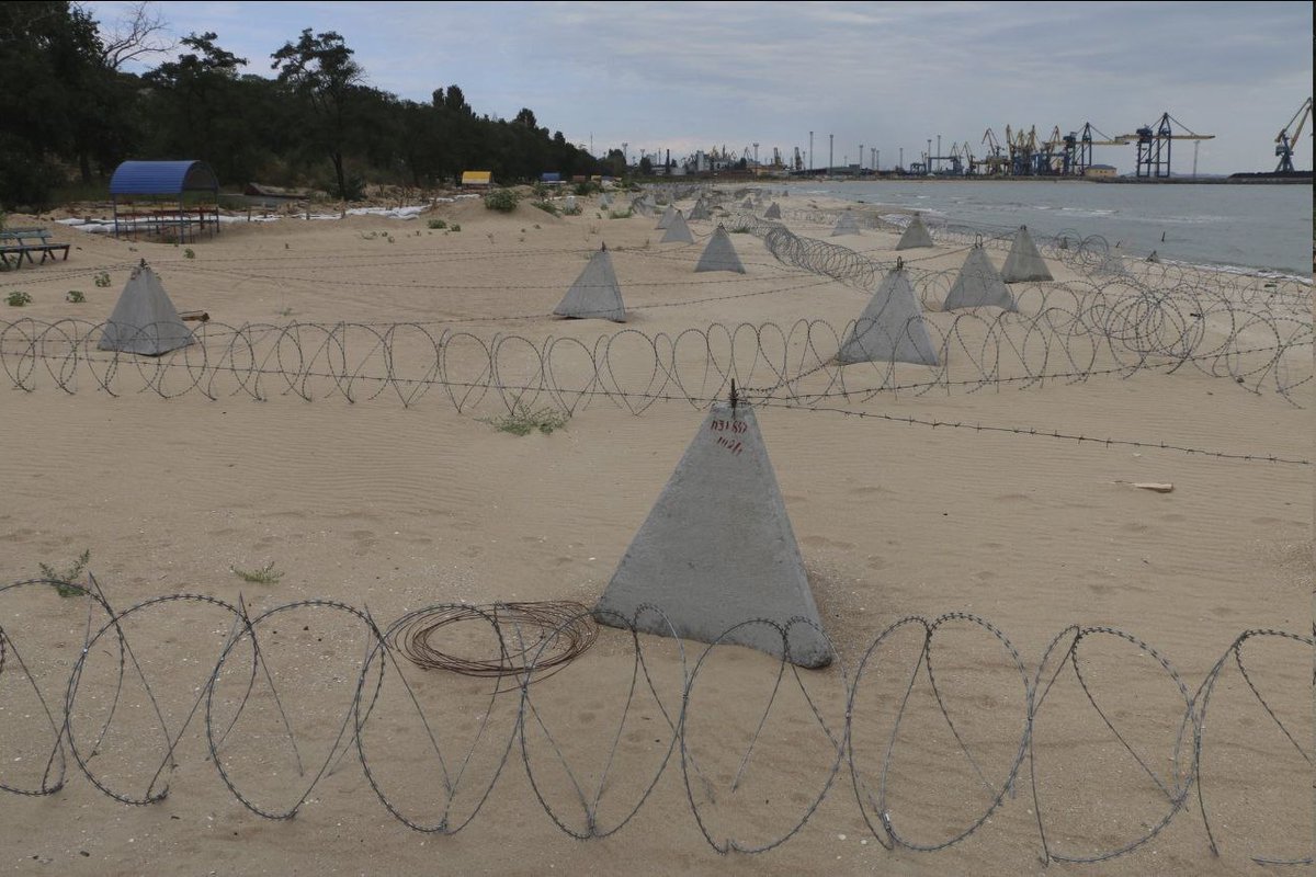 Manche ukrainische Strände wurden mit Stacheldraht und Panzerigeln überseht.