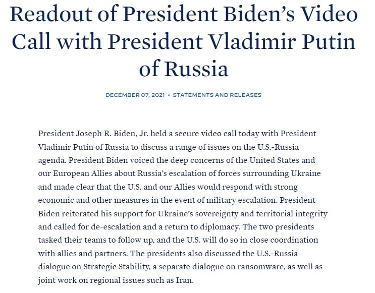 Dies wurde jetzt wieder deutlich, als Putin und Biden Direktverhandlungen per Online-Schalte führten und ausgiebig das ukrainische Thema besprachen #Donbas#BidenPutin
