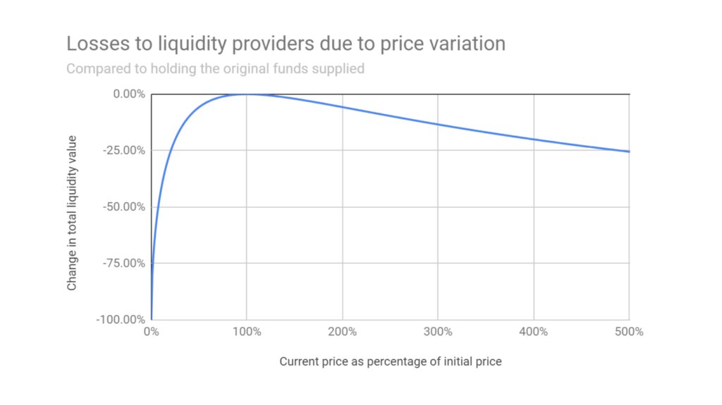 With the Uniswap invariant curve, when the buy occurs the price goes up to $201, say, even though the "actual" price on all other exchanges is still $200. The purchaser paid a price of $200.5 or so.
