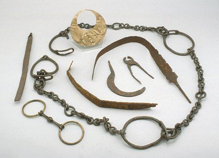 La arqueología de la brujería no se limita a tiempos remotos. En las excavaciones de plantaciones de esclavos del siglo XIX en EEUU aparecen con frecuencia bultos de objetos mágicos que empleaban los esclavos para invocar protección sobrenatural.->