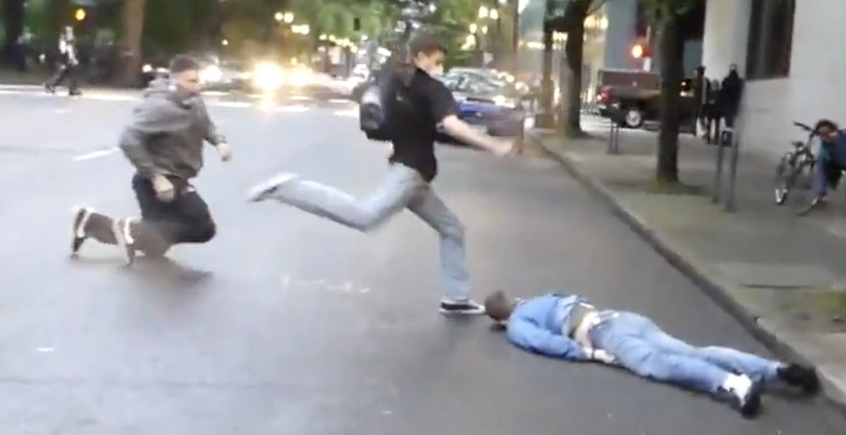Update: After nearly a year and a half, one of the two youths who knocked a man unconscious in May 2020 & kicked his teeth in at a #BLM protest in downtown Portland, has pleaded guilty. Emilio A. Deleon (left) will be sentenced at a later date.