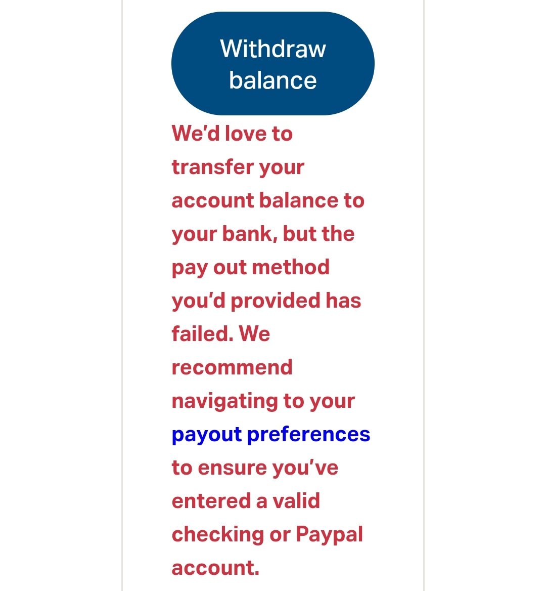 I've battled since 2018 (!) to make a payout to PayPal, and have never been able to make one. I get this error of death.
