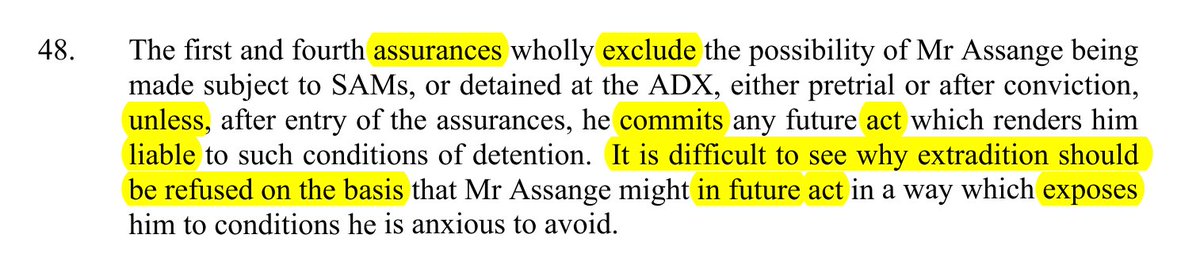 Let's look again at the judges' paragraph 48 on prison conditions and location, bearing in mind that in 53-56 they write about careful consideration, precision, the idea that the US sticks to the letter of assurances, and what assurances mean.