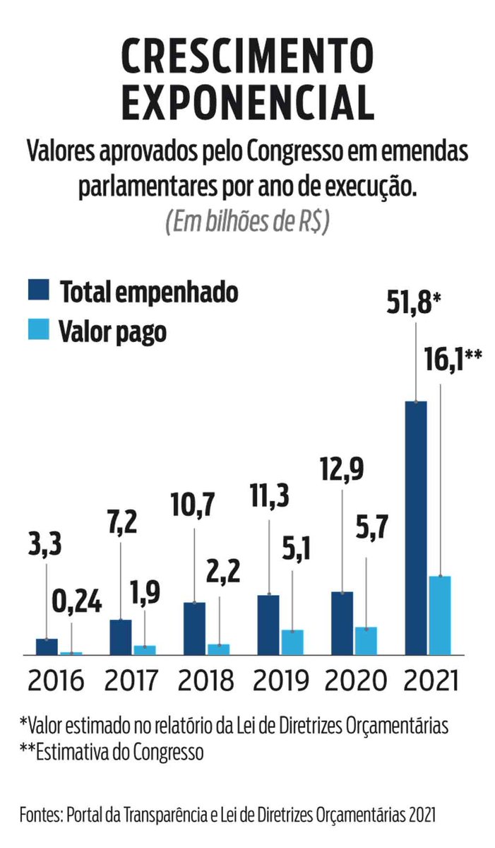 Sem falar do Orçamento secreto. R$ 16,8 bi em 2021 (50% maior que o custo do Congresso).