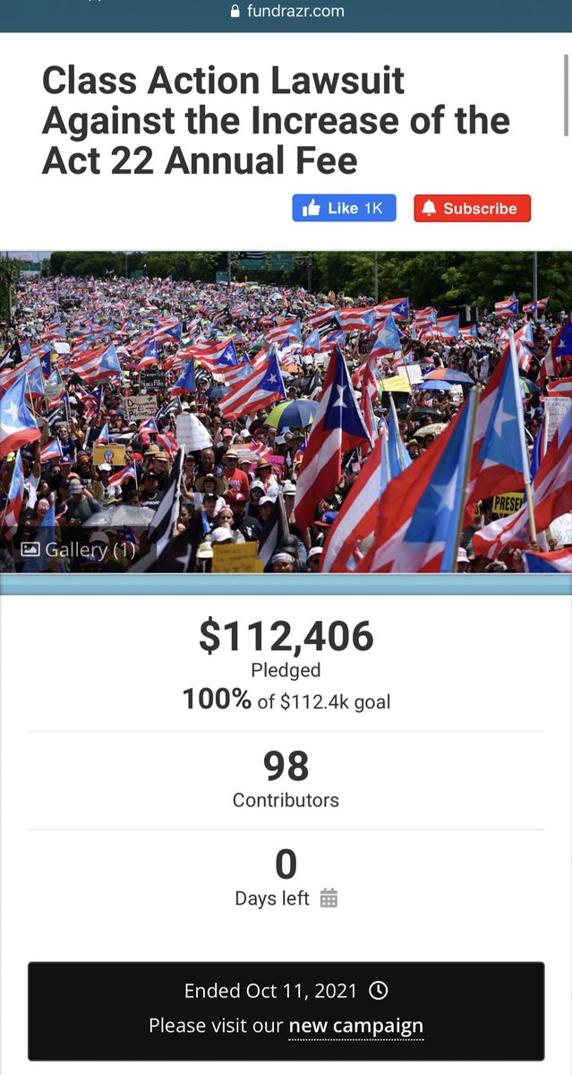 This $112k+ suit was followed by $34k raised to petition PR ‘s Supreme Court