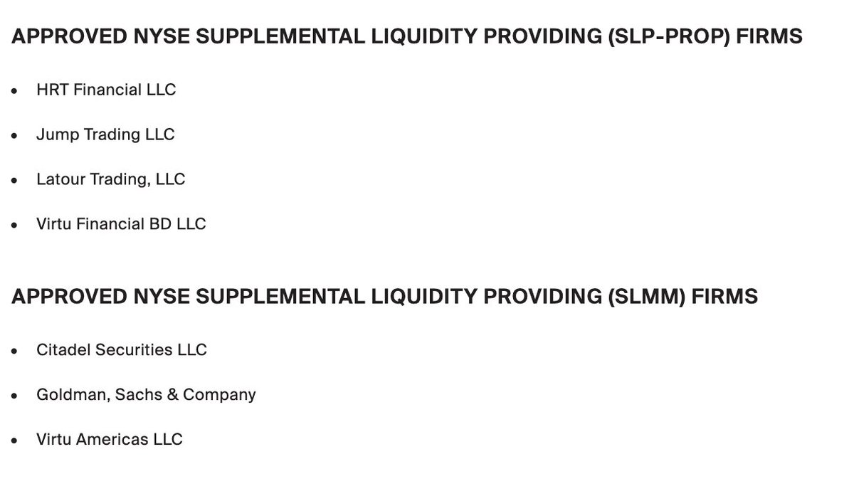 Here the DMMs ("designated market makers") & SLPs ("supplemental liquidity providers") on NYSE: