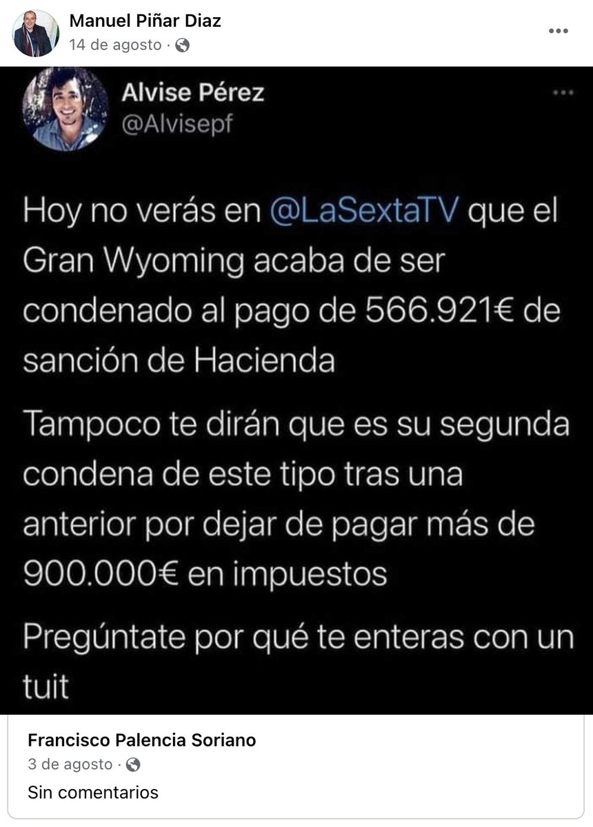 Hasta Facebook, que deja pasar todo tipo de basura, es capaz de etiquetar como información falsa algunas de las publicaciones de su señoría.