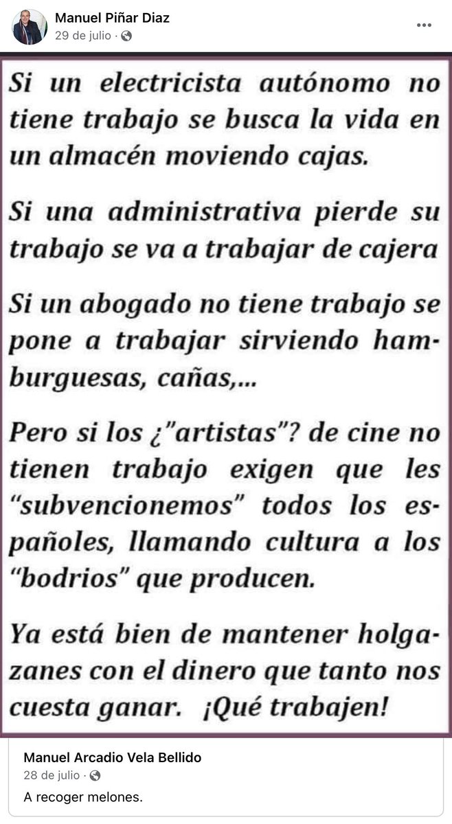Que no falte una buena ración de insultos a los trabajadores de la cultura.