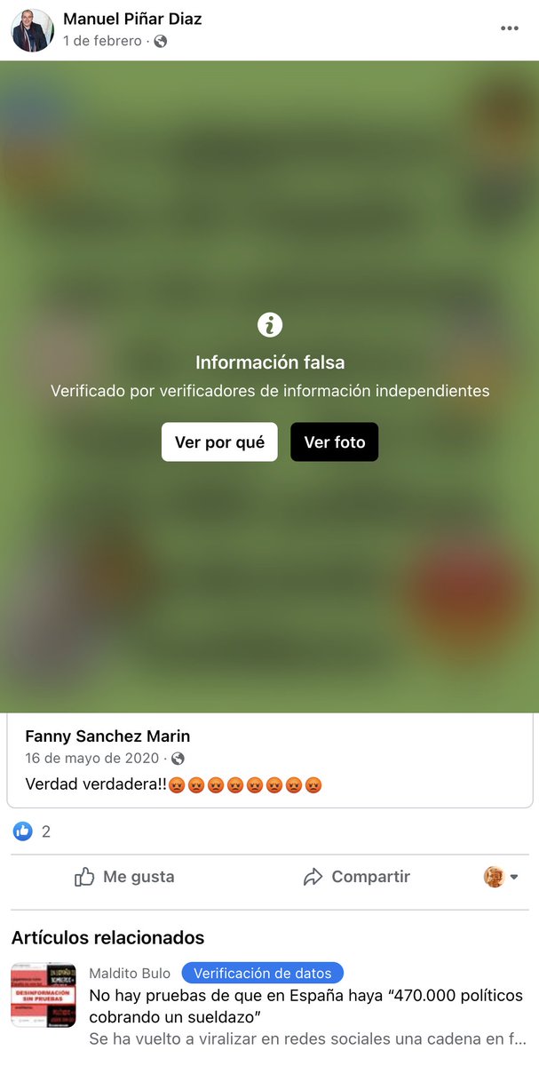 Otra publicación marcada como basura falsa por Facebook. Y volvamos a recordar que Facebook tiene unas tragaderas espectaculares para la información falsa. Cuando marca una es porque ya es un absoluto escándalo de bulo.