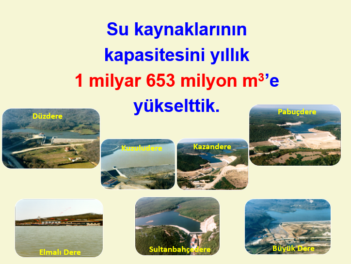 Dönemimizde yaptığımız 600 adet muazzam içmesuyu temin tesislerinin haricinde, son 3 yıldır şehre 1 m3 dahi ilave su getirilmemiştir.