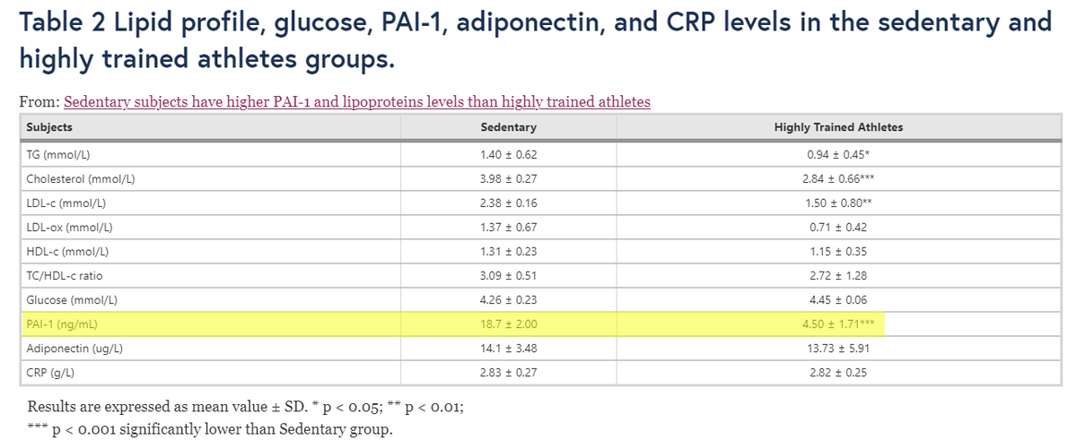 PAI-1 is greatly reduced in trained athletes vs sedentary Image