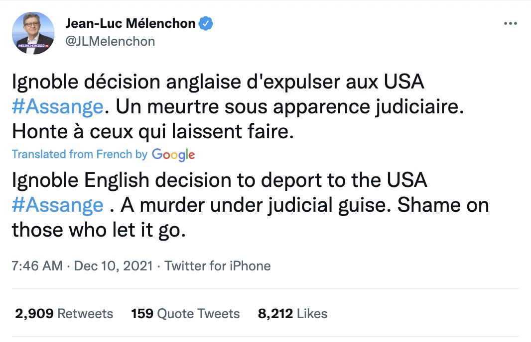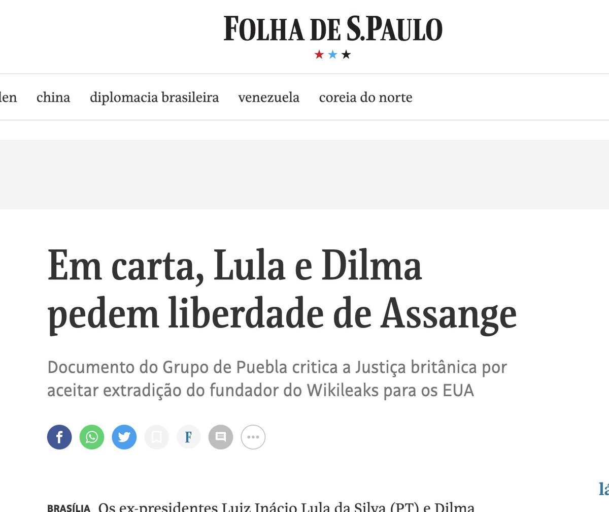 It's revealing - and encouraging - that the most vehement voices in Assange's defense are anti-establishment voices on the right and left. Tucker went on a multi-episode crusade for his pardon. Chomsky, Ellsberg, @CiroGomes, Corbyn have as well. Yesterday, Lula & Dilma spoke out.
