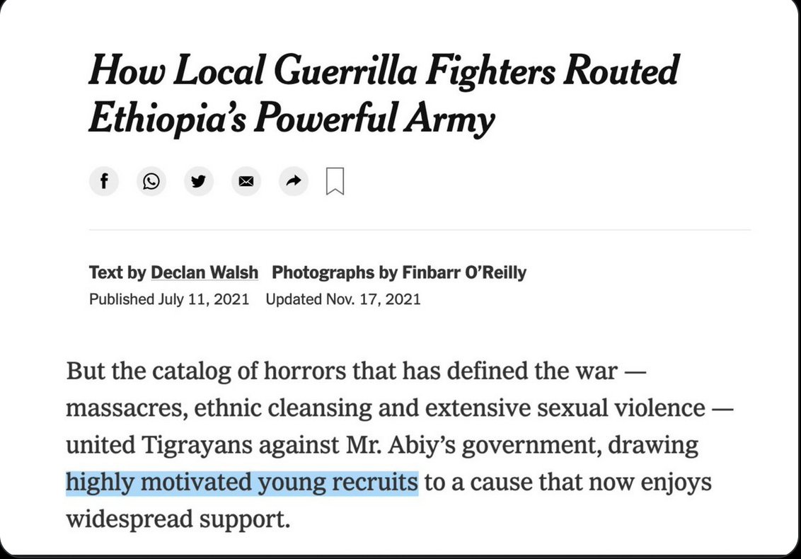 Even more worryingly, media are covering up allegations of the use of child soldiers by the TPLF- in power 1991-2018.