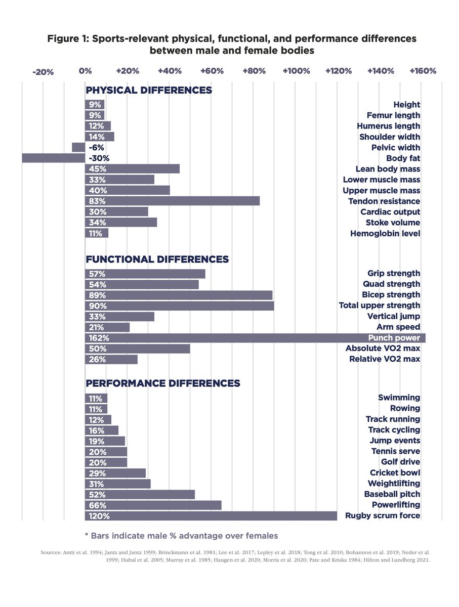 Dass Männer- und Frauenkörper so unterschiedlich sind, dass viele Sportarten der Fairness halber besser nach Geschlecht getrennt werden, sollte eigentlich unkontrovers sein. Ist es aber nicht, deshalb hier mal ein paar Daten zum (durchschnittlichen) männlichen Vorteil. |1