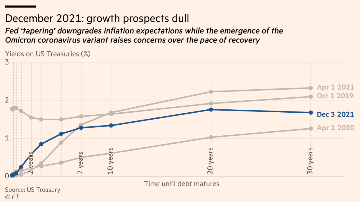 The yield curve is usually upward sloping, whereby a higher fixed rate of return is earned from lending money for longer periods of time — but it tends to flatten when investors expect an economic slowdown ig.ft.com/the-yield-curv…