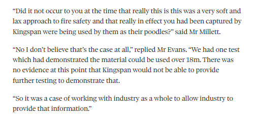 We already know Kingspan ultimately called its lawyers and threatened NHBC with defamation if it told its clients that its insulation was non-compliant. NHBC ultimately helped draft guidance to allow untested systems to be accepted more widely insidehousing.co.uk/news/news/king…