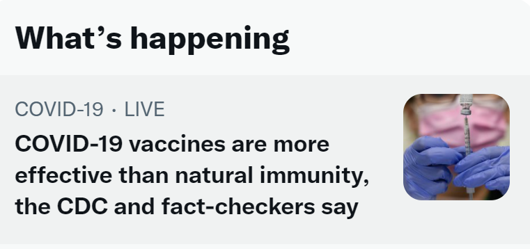 Imagine if Twitter shared one of the 130+ studies we have now showing strength of natural immunity, or the CDC did that even just once and they broadcast it over there. 👉