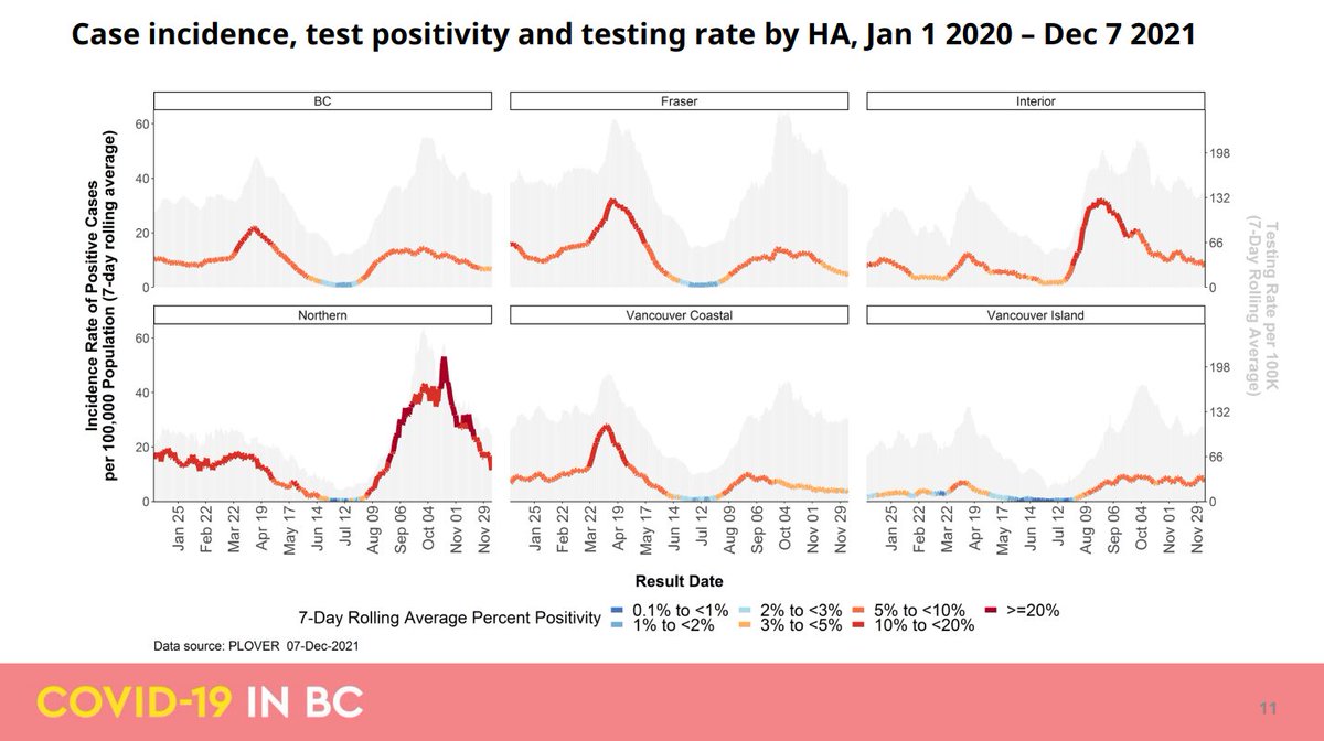 Dr. Henry: We have had very high rates of testing across B.C. over the last period of time during this wave. We are now seeing a decrease in per cent positivity.