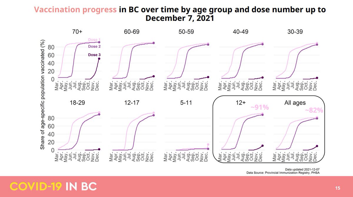Dr. Henry: These are the vaccination numbers as of Dec. 7. By the end of this week, close to 90% of people 70+ will have received their booster dose. We're making really good progress.