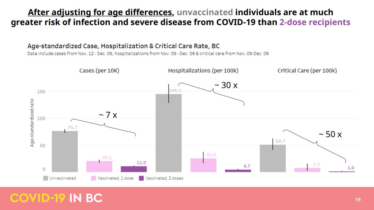 Dr. Henry: With the Delta and Omicron variants, you need to get vaccinated to protect yourself. If you're an unvaccinated 50-year-old person, you're 7x more likely to be infected with COVID-19, 30x more likely to end up in hospital, and 50x more likely to end up in ICU.