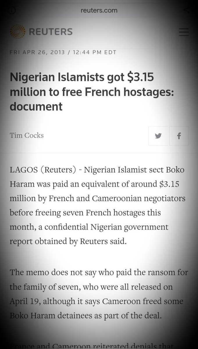 According to the former U.S Ambasaddor to Mali, in 2010 France paid $17 million in ransom. SEVENTEEN MILLION DOLLARS for the release of four French citizens.