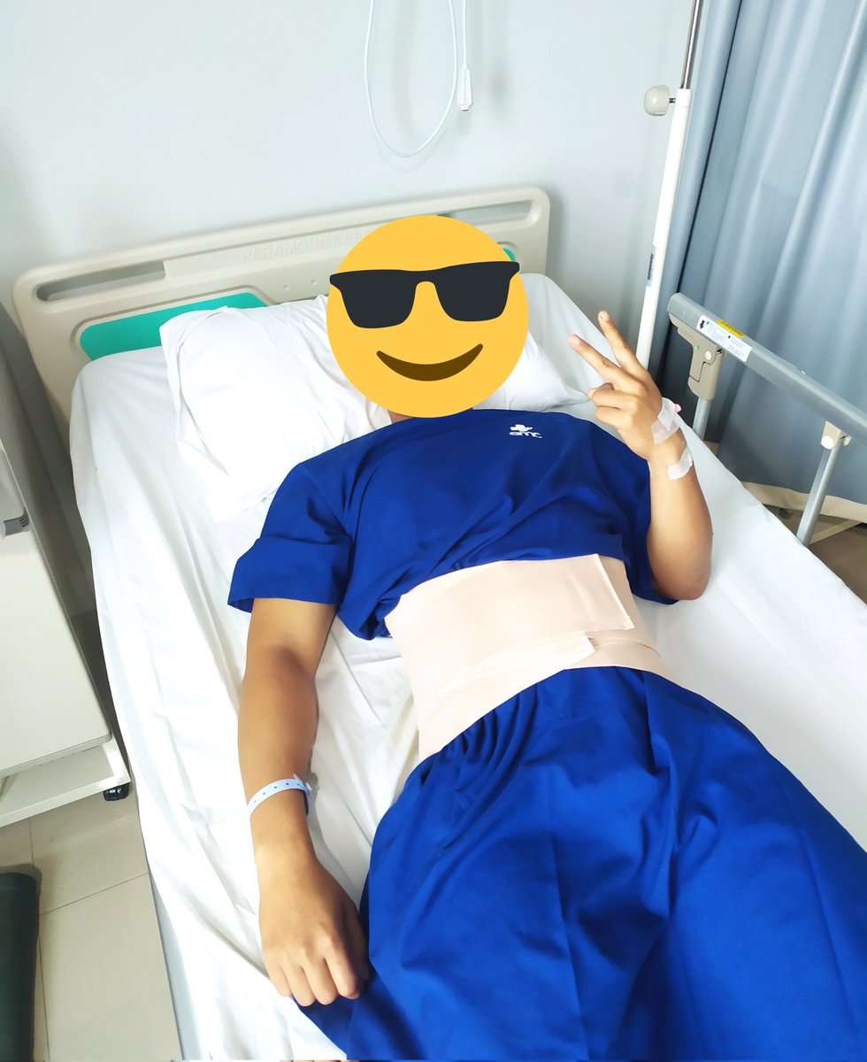 Skrg masih proses recovery, tiap hari harus pake korset. Mohon doanya supaya normal kembali 🙏