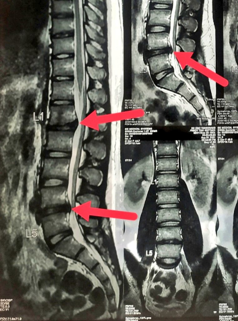 Pun sama dgn yg gw alami. Gw cedera dibagian Lumbar (Pinggang) L1-L2 & L4-L5. Alignment tulang gw masih bagus, lurus. Tapi tetep si sarafnya keteken sama bantalan yg keluar. Saraf kaki kanan yg kena. Alhamdulillah gk smpe lumpuh. Cuma emg sakit luar biasa menjalar ke kaki.