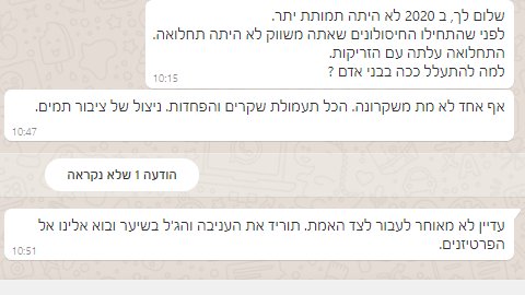 3. הטיעונים הכי הזויים הם בגזרת המאבק בקורונה. לא צריך להדהד כאן את השטויות שנכתבות ברשתות ובמאמרי הדעות, את ההשוואות המופרכות לדיקטטורה, את הקללות המטונפות נגד אנשים כמו ניצן הורוביץ וד"ר אלרעי פרייס - כדי לדעת שהשמאל המתאבד שוב קם עיוור ולא בפוקוס, עם הנג אובר קטלני