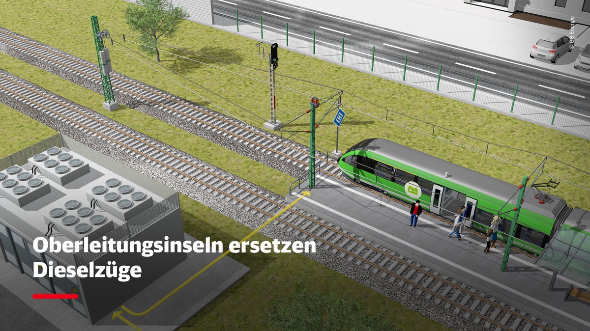 ➡️ The electrification of railway lines is complex and expensive. Deutsche Bahn is therefore starting to equip only shorter sections with overhead wires.