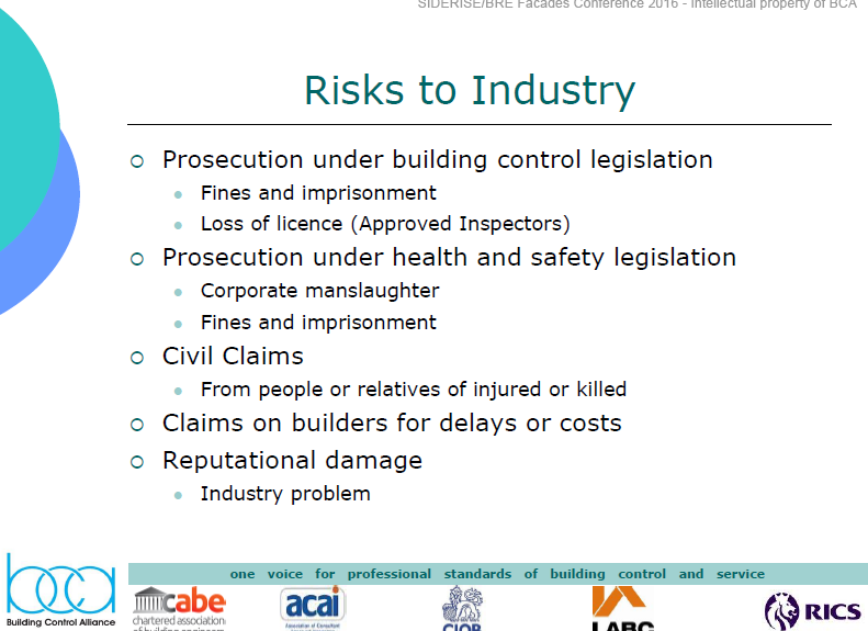 Incidentally, I've found slides of his presentation where he outlined the risks to the industry of dangerous cladding. He mentions manslaughter.