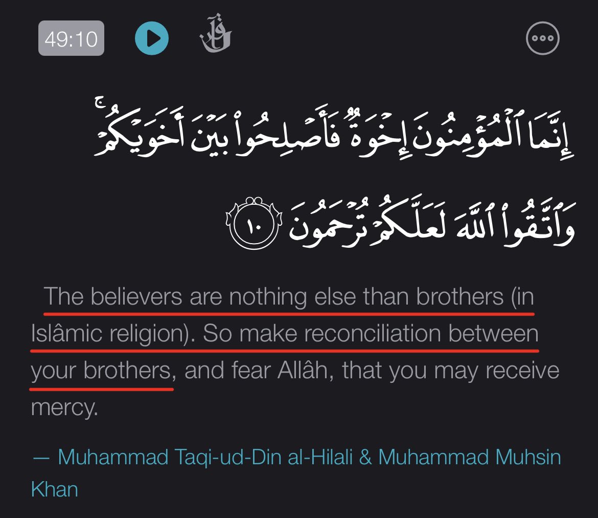And He, the Most High, said in the next verse: “The believers are nothing else than brothers, so make reconciliation between your brothers.” - (49:10).