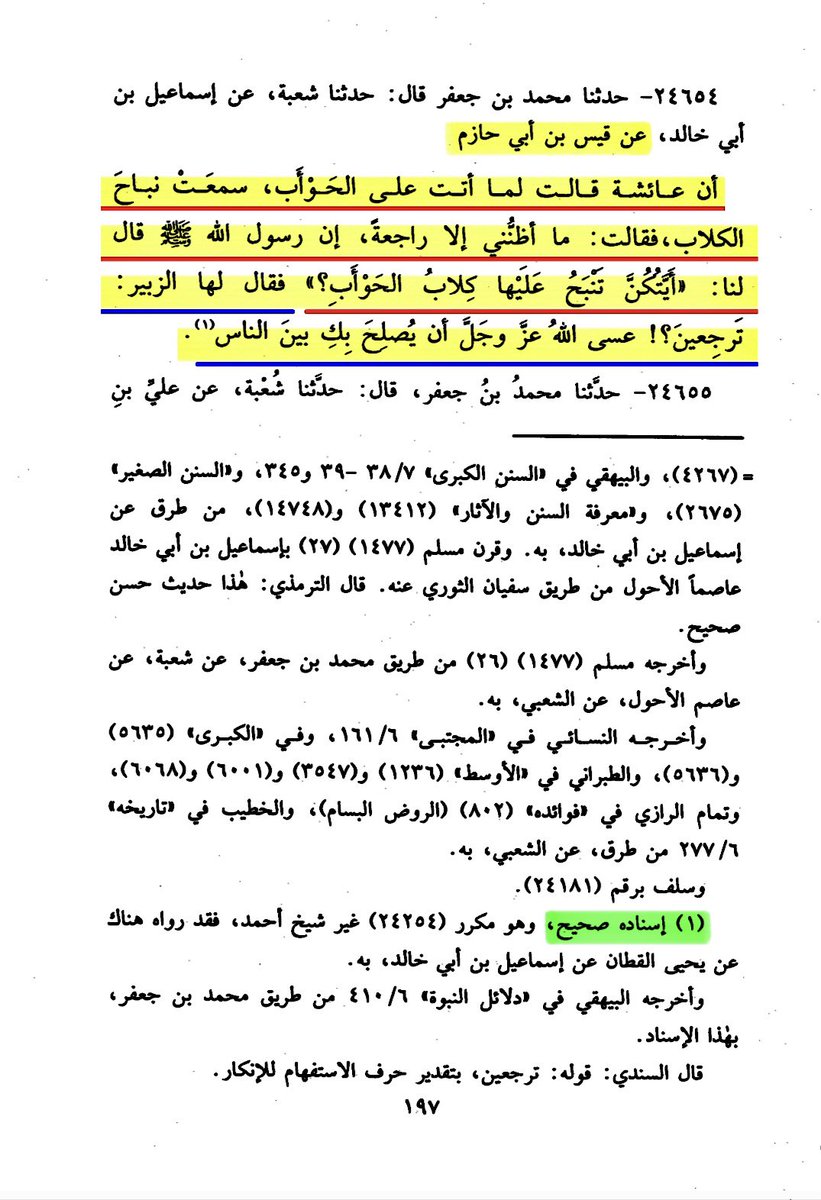 …of al-Haw’ab?»." So Talha said to her, "Go back!? Allah the Most High might create peace between the people through you."” - Musnad Ahmad, vol. 41, p. 197, h. 24654. (Saheeh).