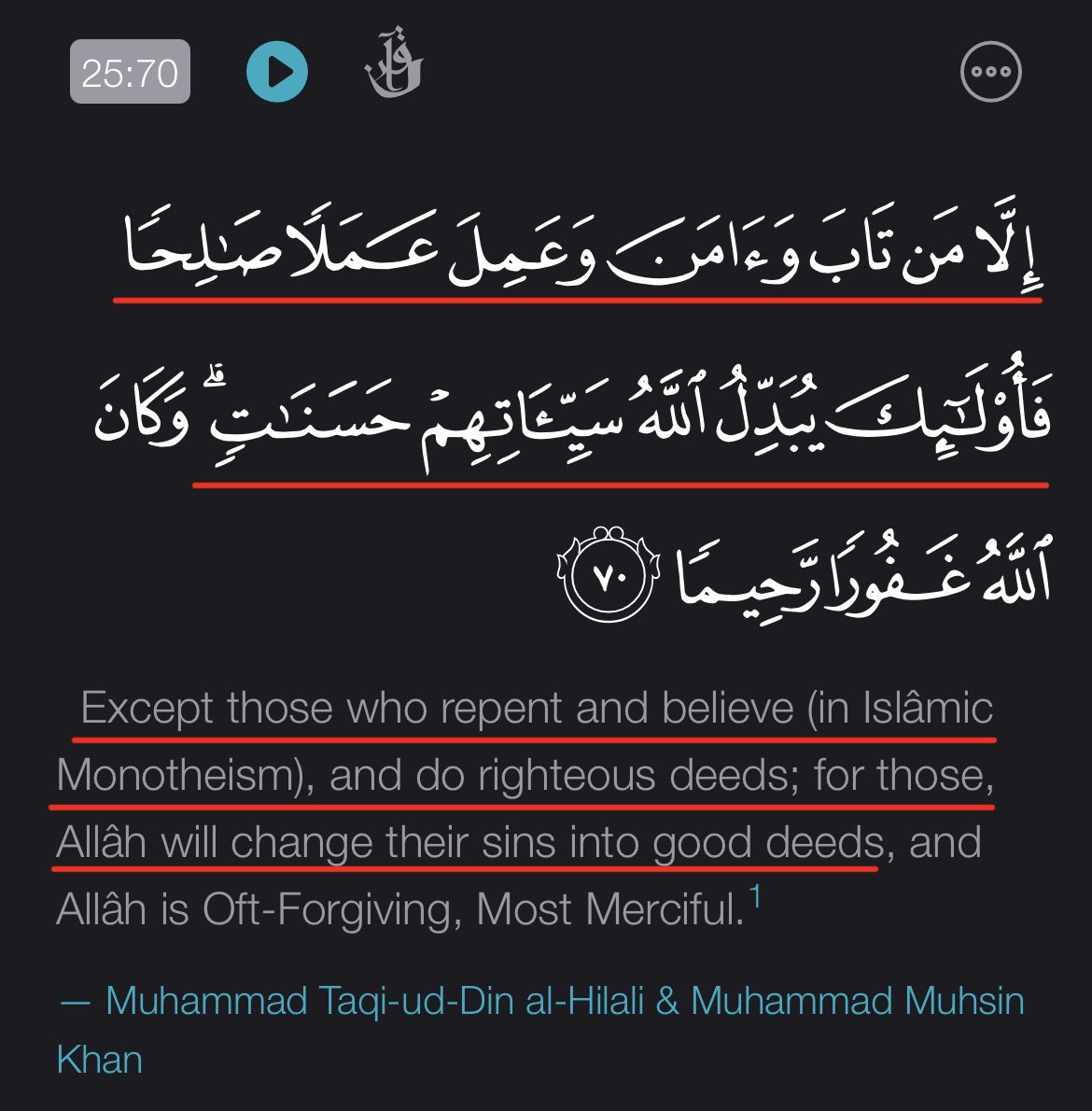 And to fully prove our case, we use the verse of Allah where He said: “And those who invoke not any other ilâh (god) along with Allâh, nor kill such person as Allâh has forbidden … Except those who repent and believe (in Islâmic Monotheism), and do righteous deeds.” - (25:68-70)
