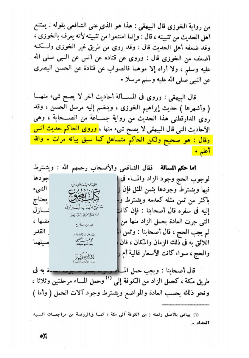 👉 Imam a-Nawawi said: “And al-Hakim narrated the hadith of Anas and he said that it’s authentic. However, al-Hakim is lenient as shown before multiple times, and Allah knows best.”