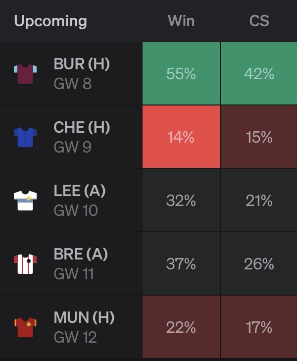▪️GW21 Fixtures (% of clean sheets)