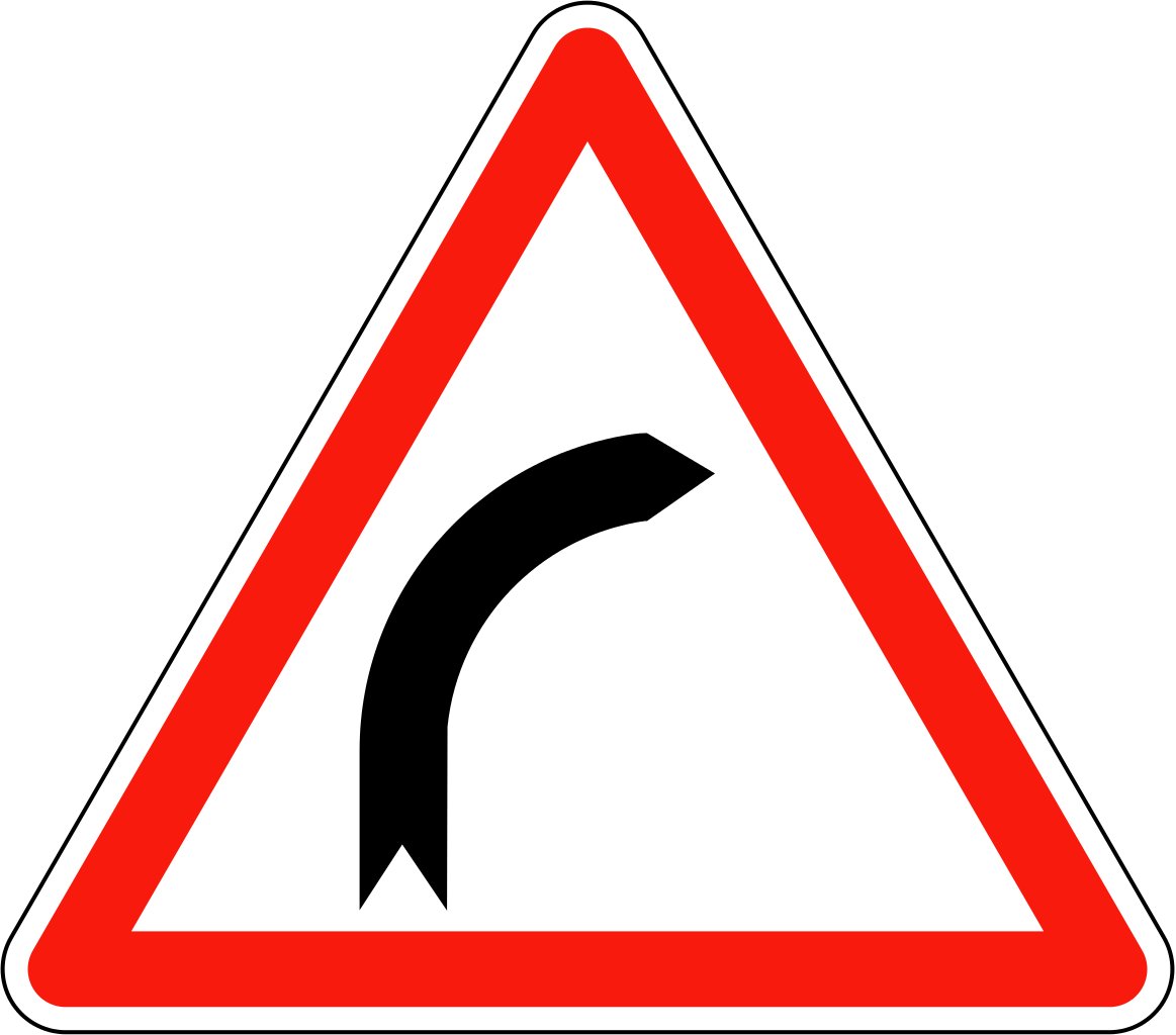 But this is NOT what “dangerous bend” signs in contemporary European road signage look like. They look like this (this is the French sign, but most European signs should look pretty similar): •4/6