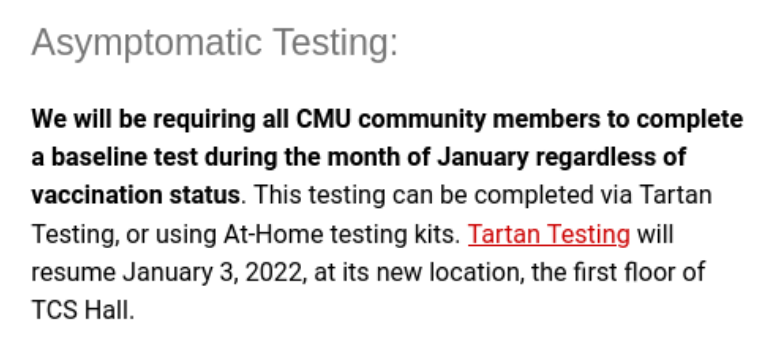 Folly of accepting at face value anything these COVID bureaucracies say. Carnegie Mellon announced mandatory "boosters" -- PLUS mandatory asymptomatic testing. If the point of "boosters" is to reduce severe symptoms, why are you also testing the "boosted" with *zero* symptoms???