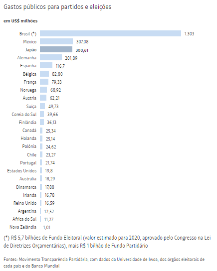 Estudo do Movimento Transparência Partidária com 25 países mostra nossa posição em gastos com campanhas eleitorais.