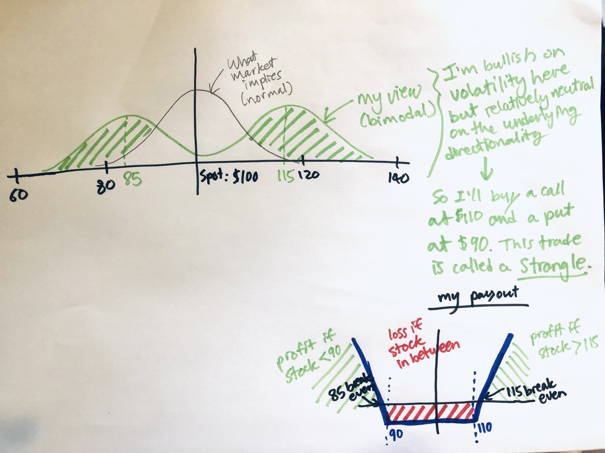 Now, to pick strikes, u want to look at the breakeven associated w/ each strike + the mental probability distribution u drew earlier.
