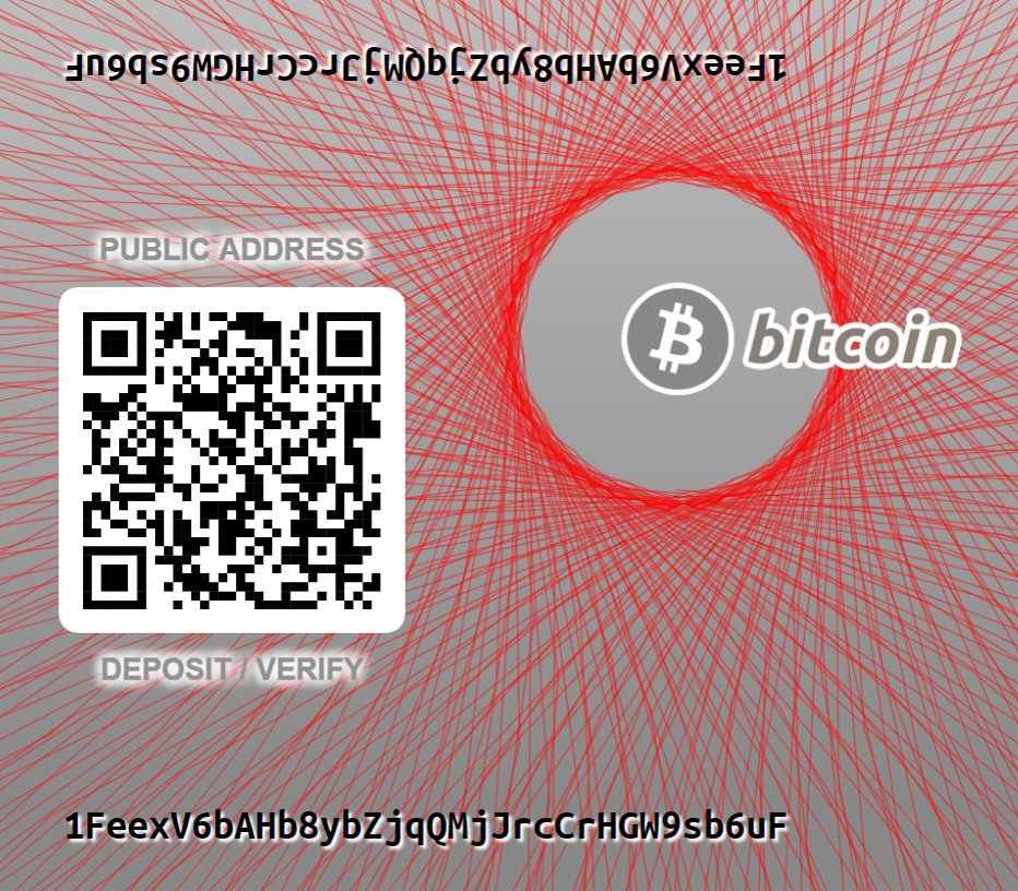 For reference, this is how a real paper wallet for the @1FeexV6 address from this time period should have looked.