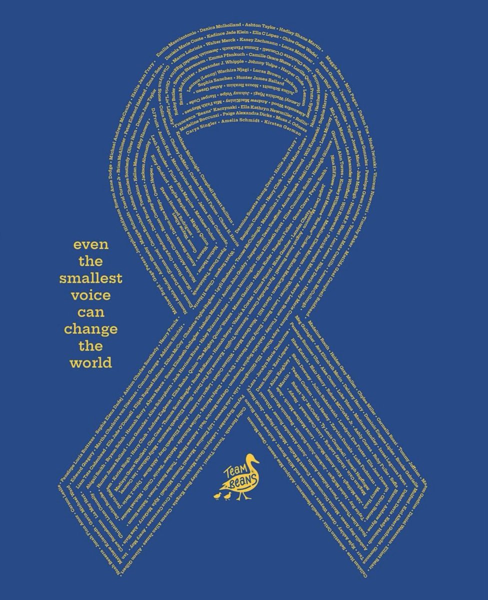 I’m really proud of this incredible work of art we just put on sale to benefit the Team Beans Fund. It’s a childhood cancer awareness ribbon made from 320 names of childhood cancer warriors by designer @RoniLagin. The t-shirt is on sale for three weeks. customink.com/fundraising/th…