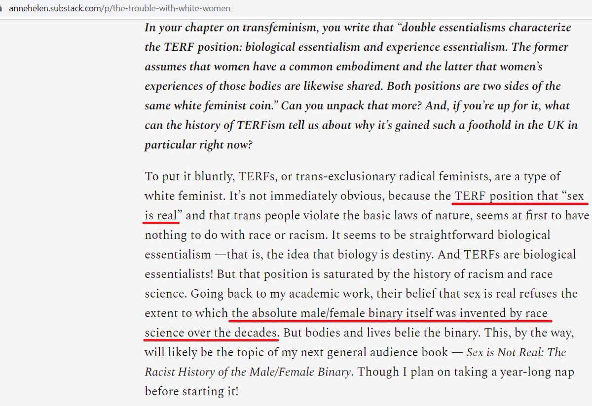 2/I think the easiest way to sum up what's going on here is a weird form of backward reasoning where if a sentiment is expressed by (someone seen as) a TERF, it is, by definition, bigoted, and something something something white supremacist. The dot-connecting needn't make sense.