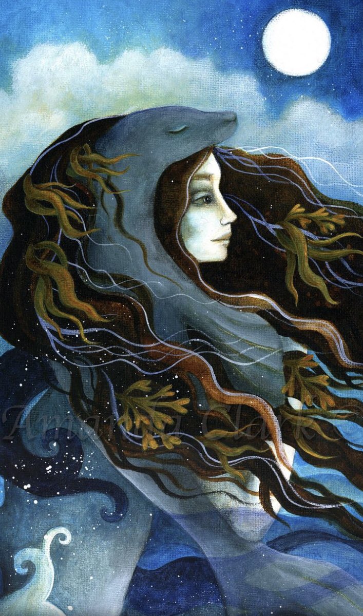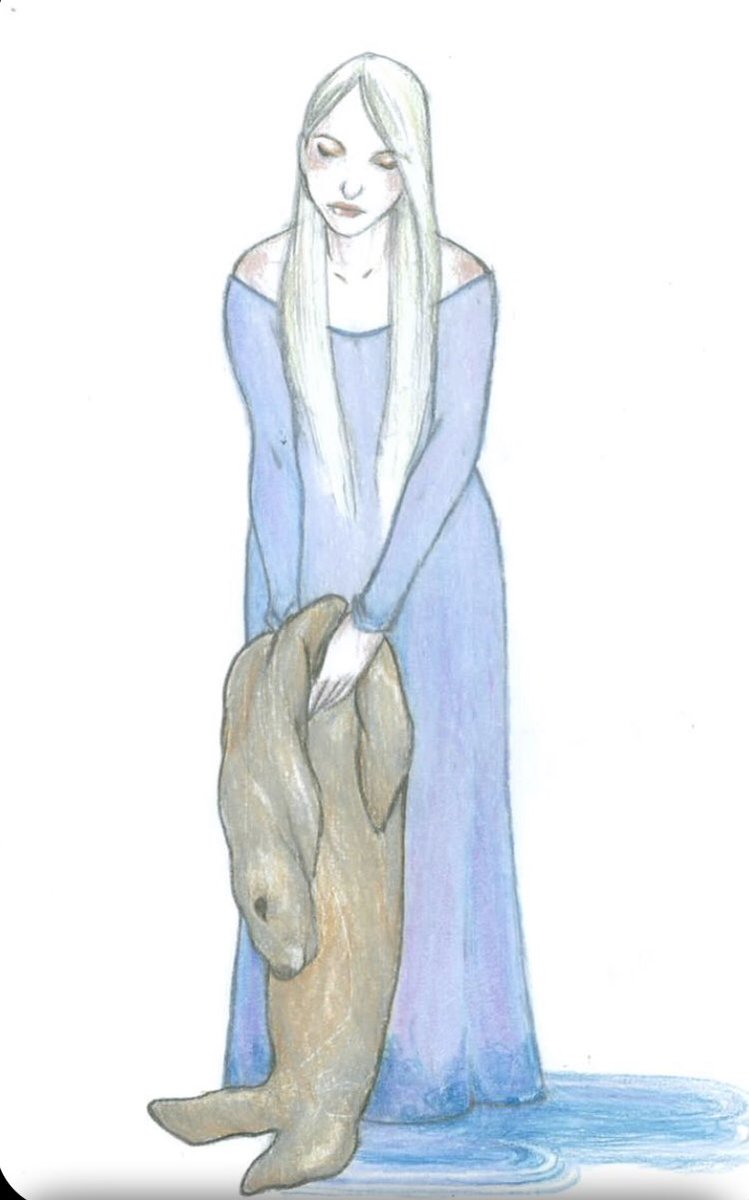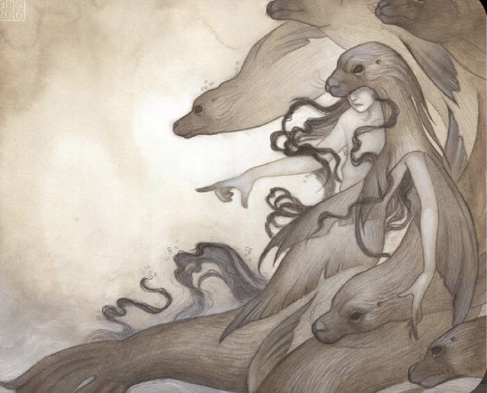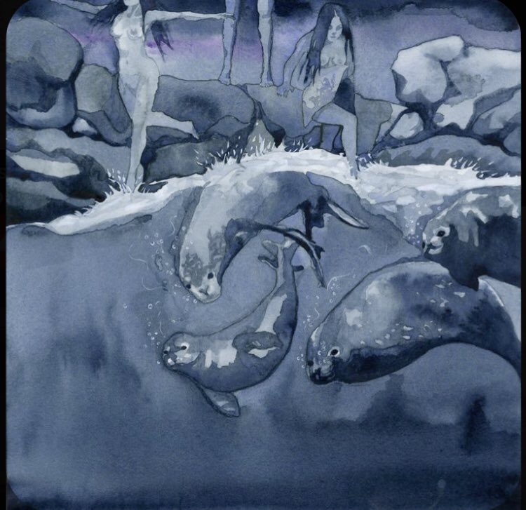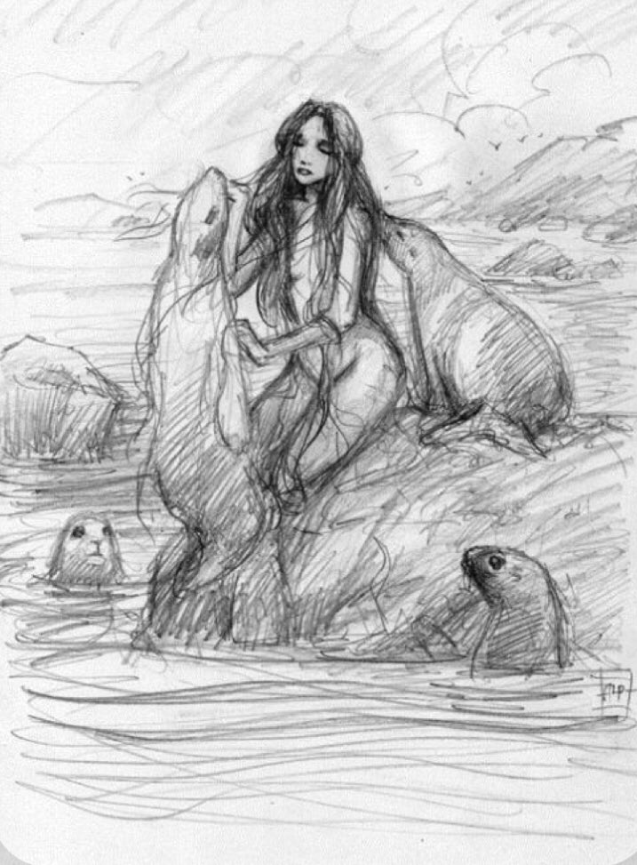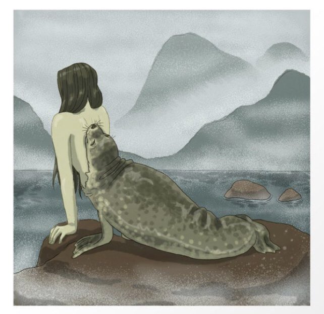 …sé quedó observando a una de ellas toda la noche. Cegado por el deseo,y la desesperación de no volverla a ver,ya que sabía que todos regresarían al mar al amanecer,el joven tomó la piel de foca de aquella bella mujer. Con los primeros rayos de Sol, todos los Kopakonan vestían…